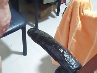 Paper without ass with her 6 and a half cm dildo and tries a prolapse