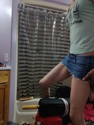 ふしだらな女の服を着た大きなディルドに乗るシシー